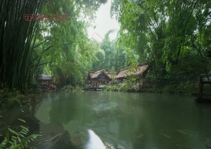 竹篱茅舍桃花艳,堤岸幽兰阵阵香。