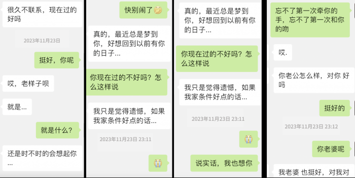 我不知道他们两个是怎么加上好友的,但可以看出老婆似乎觉得自己对不起初恋。